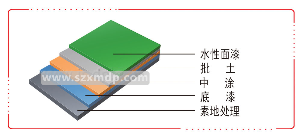 ![]() 素地處理:打磨、吸塵處理; 底 涂:環氧樹脂強滲透封閉底涂涂刷; 中 涂:環氧樹脂自流平中涂材料,用鏝刀或平 刀抹刮,根據厚度要求可多層施工; 找 平 層:再次打磨找平,進行吸塵處理; 膩 子 層:批刮環氧樹脂中涂膩子層材料; 面 涂:環氧樹脂自流平面涂,用專用鏝刀刮于中涂之上; | ![]() ◎ 選用無溶劑高級環氧樹脂加優質固化劑制成,無毒、無污染; ◎ 化學性能優良,耐酸、堿、鹽、油類介質腐蝕,特別耐強堿性能優; ◎ 平整光亮,可獲鏡面效果; ◎ 機械性能優良,耐磨、耐壓、耐沖擊,有一定彈性; ◎ 施工快捷方便; ◎ 厚度 1mm 以上,使用年限 8 年以上。 |
