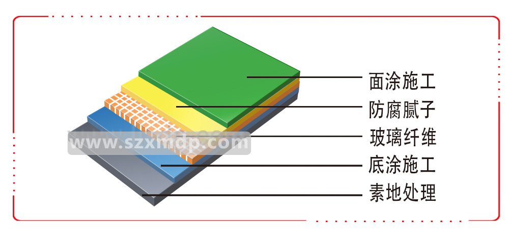 ![]() 1. 基礎處理:依基礎狀況做好打磨、修補、除塵; 2. 底涂施工:將樹脂按適當比例加入促進劑和固化劑,均勻刮涂,增強表面附著力; 3. 鋪玻璃纖維布:將玻璃纖維布平整放置,全面鋪設樹脂一道; 4. 環氧膩子:用環氧雙組份加入適量膩子粉,用鏝刀將其均勻涂布多道; 5. 面涂施工:將調配好的面涂用鏝刀或滾筒均勻涂布, 完工后整體地面光亮潔凈,達到重防腐效果。 ![]() ![]() | ![]() 試驗項目指標壓縮強度≥130變曲強度≥230拉伸強度≥100沖擊韌性≥270吸水率≤0.2收縮率≤0.2耐化學介質60%硫酸56天無變化耐化學介質25%氫氧化鈉56天無變化耐化學介質20%硝酸56天無變化耐化學介質20%氫氟酸56天無變化耐化學介質120#汽油56天無變化耐化學介質20%醋酸56天無變化耐化學介質20%H20256天無變化 |