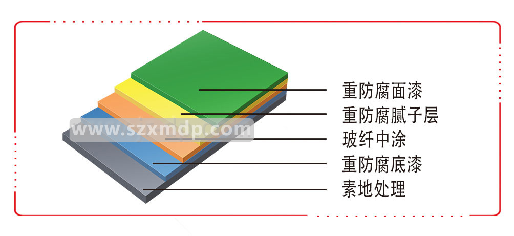 ![]() 素地處理:打磨、吸塵處理; 底 涂:涂刷防腐樹脂底涂材料; 玻纖中涂:鋪設玻纖布,將調好的防腐樹脂中涂材料倒于玻纖布上刮平 (此中涂可根據要求進行多層多布施工); 找 平 層:再次打磨找平,進行吸塵處理; 中 涂:批刮防腐中涂膩子層材料; 面 涂:用鏝刀將防腐樹脂面涂材料鏝涂于中涂之上,確保表面平整光潔。 | ![]() 環氧玻纖防腐自流平地坪廣泛適用于電池生產廠、 化工廠、精煉廠、防腐槽池、排水通道、污水處理廠、 飛機維修廠等貯存溶劑和酸性物質的場所。 ![]() ◎ 防腐蝕性能好; ◎ 增加基體的強度與彈性模量; ◎ 提高防腐反應熱的熱變型溫度和低溫重擊強度。 |